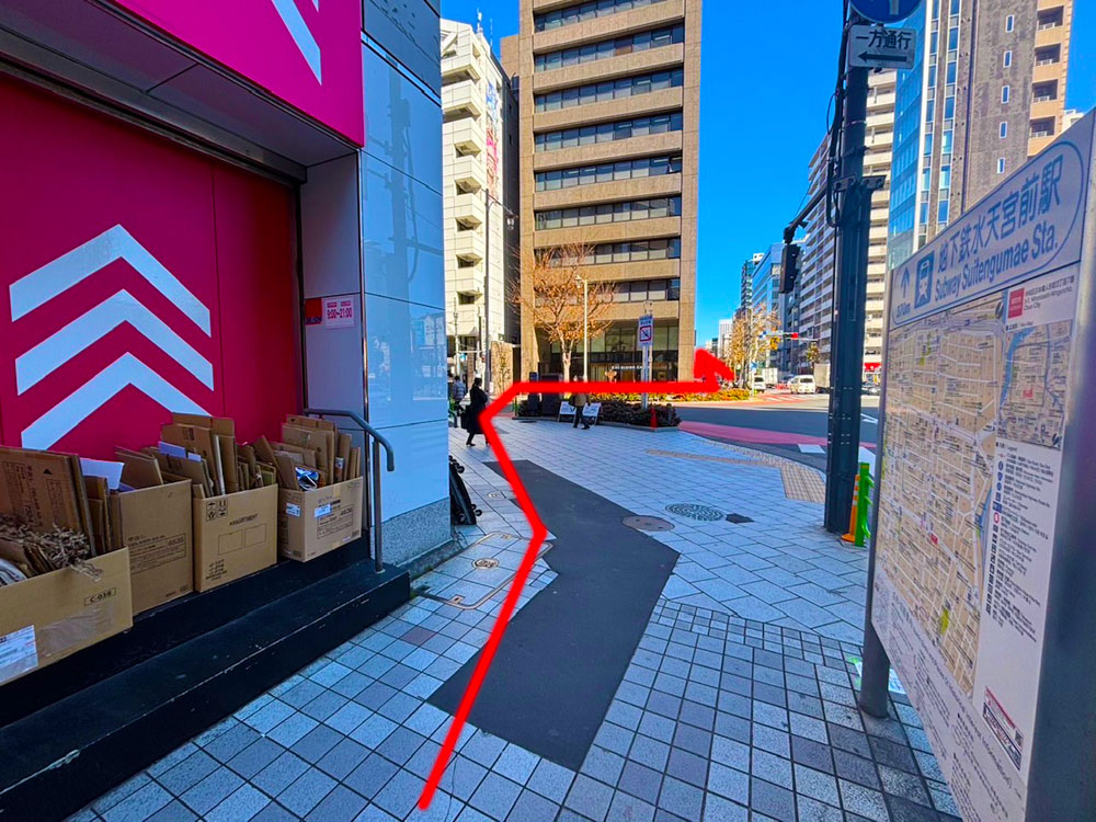 ①A5番出口を出て左方向に進む。